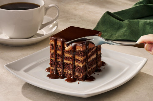 Torta de chocolate, cheesecake de chocolate oscuro y crema con glaseado.